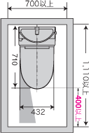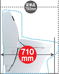 大便器の共通特長&機能 * リラックスミュージックDX * 除菌イオン * 部屋暖房 * ほのかライト * フルオート便座 * フルオート便器洗浄 * さらっと便座 * Wパワー脱臭 * プロガード新+ハイパーキラミック * まる洗い洗浄 * 汚れカット形状 * キレイ便座 * お掃除リフトアップ * ノズルシャッター * ノズルお掃除モード * レディスノズル * ECO6 * スーパー節電・ワンタッチ節電 1.空間にゆとりを生むコンパクトボディ 奥行710mm。狭小空間にも設置可能。 ![]() 従来のシャワートイレ一体型便器よりも 奥行寸法が80mm短くなり、 動作空間が20%も広がりました。 (奥行1,200mmの空間の場合)。 0.4坪の空間にも設置でき、別途手洗の設置が可能です。 140mm 短いタンクレス。 動作空間が35%(奥行1,200mm の空間の場合)も 広がって、これまで0.4 坪では難しかった 手洗器やカウンター手すりなどが 取り付けられます。 しかもスペースはゆったり。しっかりと手が洗えます。 奥行710mm。狭小空間にも設置可能。 <ご注意ください> 取付最小スペース イメージ ![]() <ご注意ください> 取付最小スペース(単位:mm) フルオート便座付の場合、便座先端から壁またはドア、 柱までの距離が400mm以下では人体検知センサーの 検知範囲に入り、“便フタが開きっぱなし ”“脱臭ファンが回りっぱなし”に なることがあります。 2009年1月現在、便器前出寸法 (タンク付シャワートイレ一体型便器において) 2.工事不要で取替可能!(床排水タイプ) ![]() 超節水ECO6のリトイレシリーズは、 ワイドアジャスターを搭載し、 排水位置対応範囲をさらに拡大。 排水芯200mmにも対応可能※1になり、 市場のほとんどの便器を取替可能になりました※2。 ※1 ソケットタイプの便器交換には 別途ソケットアダプターCF-200Sが必要です。 ※2 排水芯120mm以上の便器すべて。 排水芯120mm用には、専用品番を用意しています。 一部の便器は、200mm対応できません。 リトイレ給排水統合タイプなら、 手洗いカウンターもカンタン設置 ![]() 既存の給排水を利用して、 トイレと手洗カウンターをリフォーム。 新たな給排水や壁床工事もいりません。 キャビネットやカウンターの取付けは、 補強プレートを間柱に固定し、 そのプレートにキャビネットとカウンターを固定。 壁補強や壁裏工事もいりません。 (ARY6・ ARY5タイプ) 専用手洗いカウンターは2タイプ2サイズから お選びいただけます。 66タイプ 水栓パック付で汚れに強いタイプ イメージ ![]() 33 タイプ 陶器と木の足元すっきり狭小タイプ イメージ ![]() |