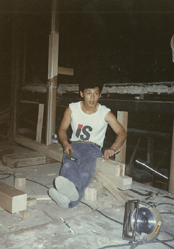 鮫島浩明。 昭和61年大工入門 日当3000円で遊ぶことさえ許されない 仕事漬けの5年間の修行を全うし年期明け。 修行の期間内に、一年半遅れて昭和63年。 次男博次も入門 大工道を磨き一人前になる為に 激しい競争が始まる。 その二年半後、平成二年。 |
