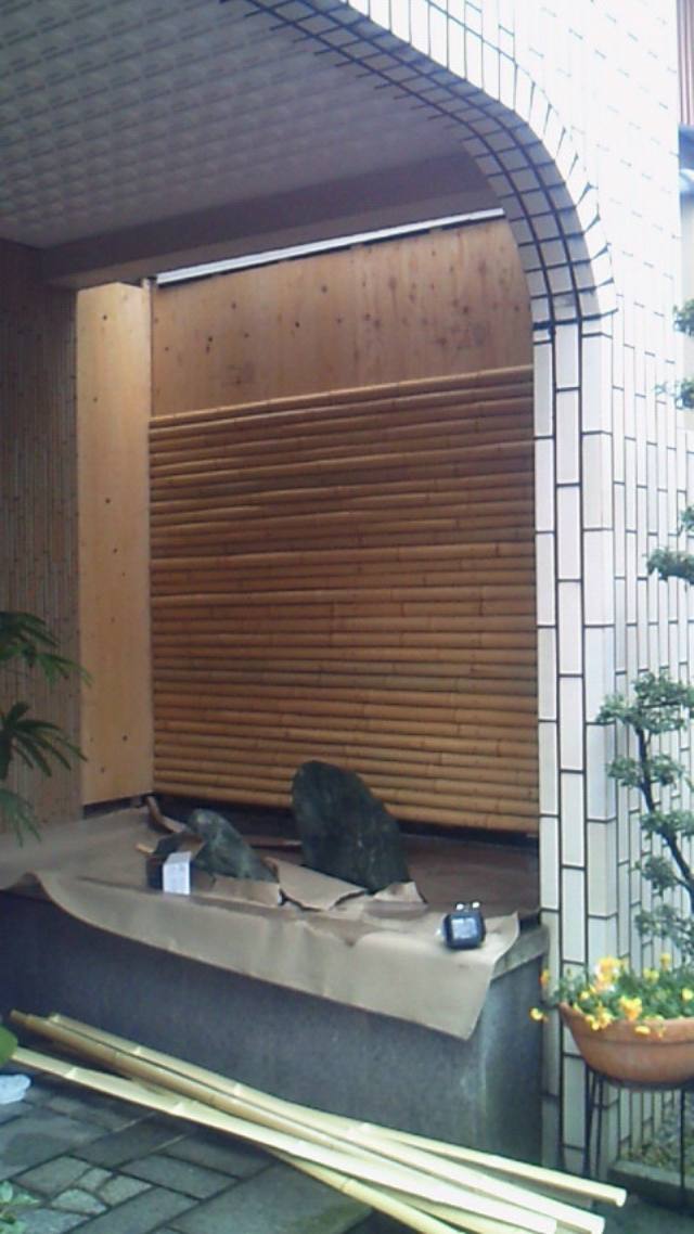 パネルの上に晒し竹を積んで固定します^^¥