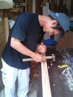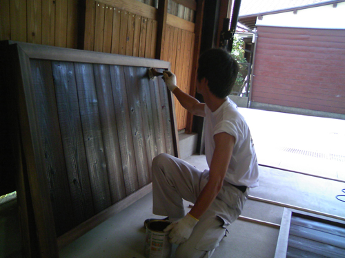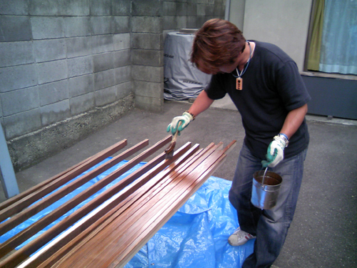 | 加工した横浅は一本一本丁寧に塗装していきます。 | |