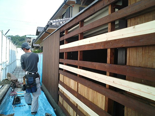 外壁リフォームに続いて 目隠しも作っていきます。 現場は同じく 京都北区北山K様邸 |