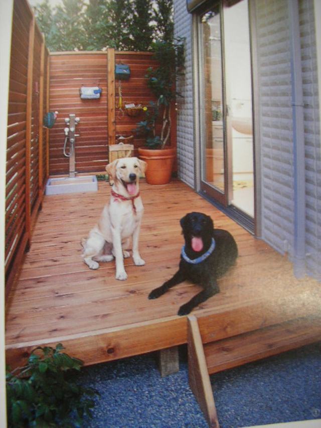 木製デッキやメンテナンス性に優れたタイルなどいずれも愛犬の足が